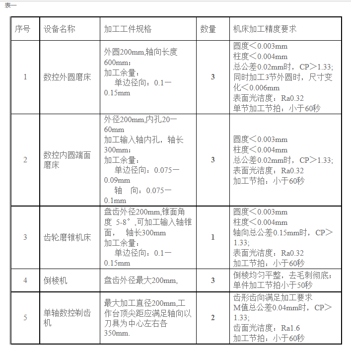 唐山通力齿轮有限公司生产设备采购项目设备技术规格如下: